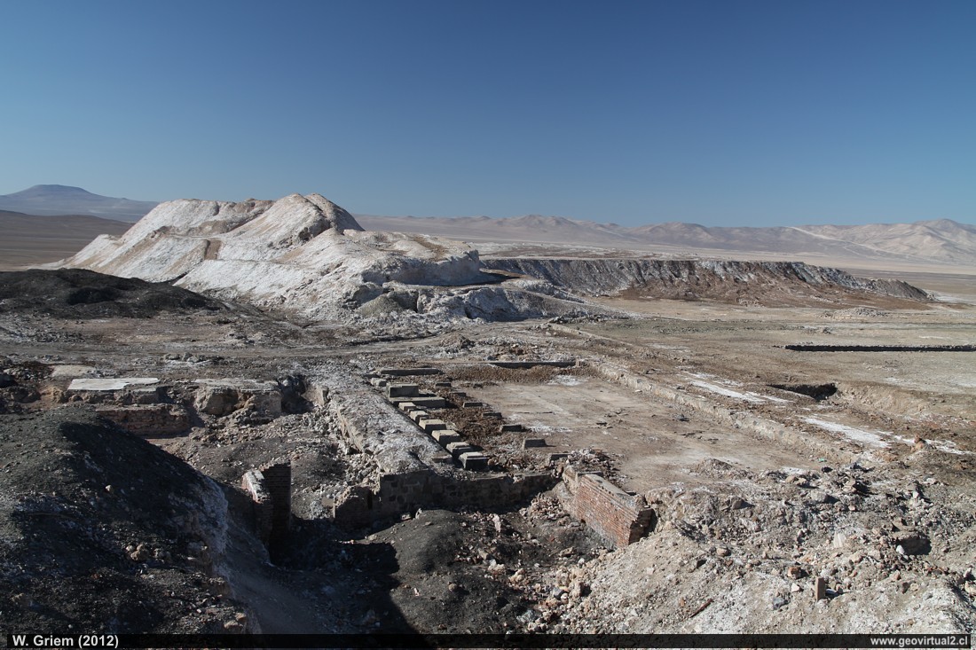 Foto: Vista general a las ruinas y tortas de la ex salitrera Tricolor en las cercanías de Taltal, Desierto de Atacama; Chile. (Ca50D2008; W. Griem 2012) - en grande