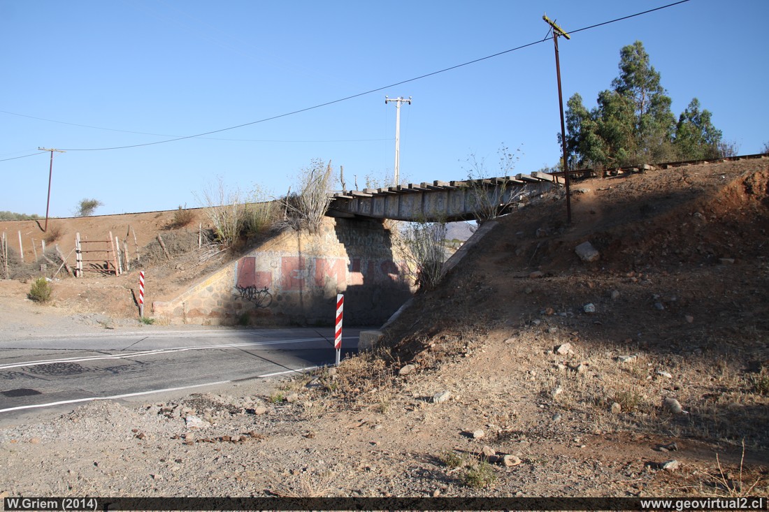 Al norte del portezuelo Cavilolén la línea se junta nuevamente con la antigua línea interior. La bajada del portezuelo Cavilolén pide un trayecto elevado, en terraplén. Aquí un puente "común" donde el trayecto ferroviario cruza la calle a Limáhuida.