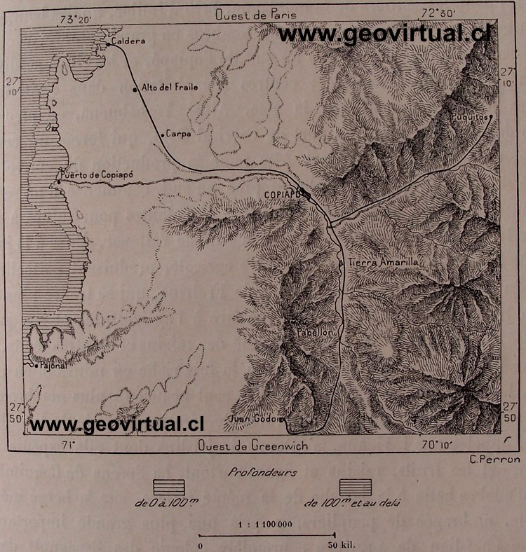 Charles Perron: Carta Caldera - Copiapó en RECLUS (1895)