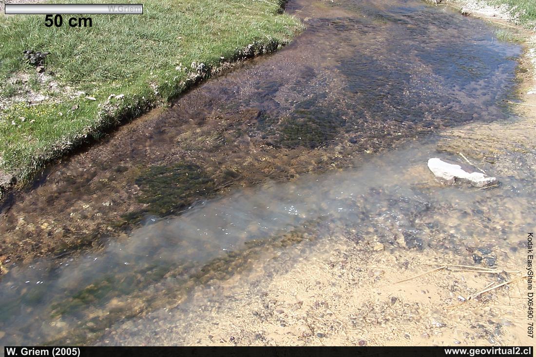 El río abajo derecha (río aguas blancas) tiene una carga típica de un nacimiento