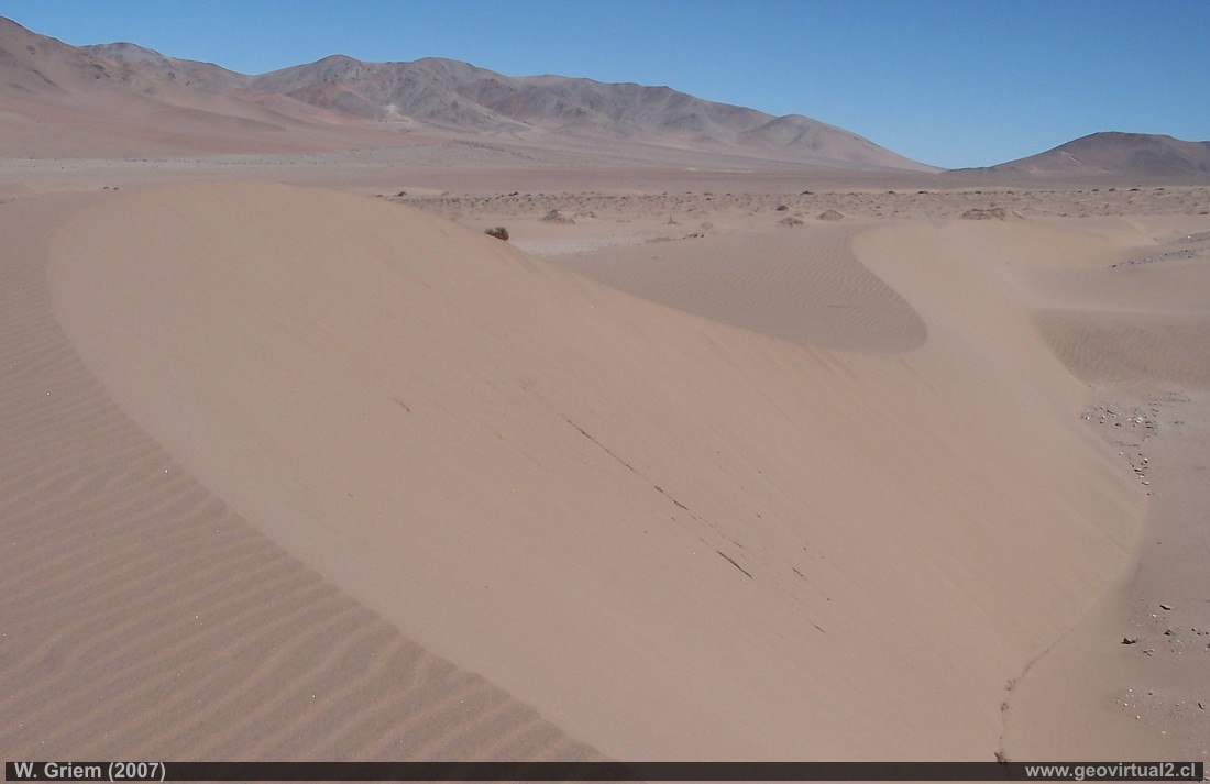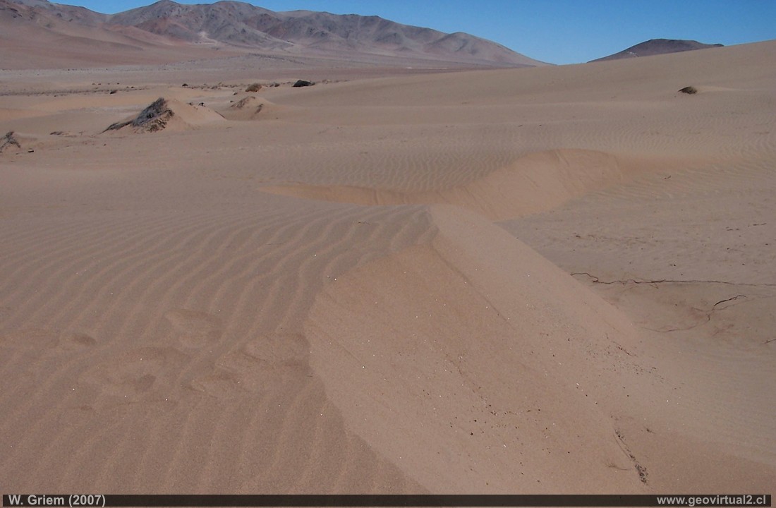 Foto: Dunas transversales en el sector Medanoso, Atacama (Chile) (W.Griem, 2007; Kodak 15029); foto en grande