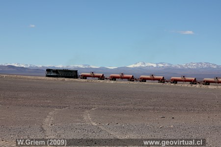 Foto: Zug in der Nähe von Altamira mit den Anden- Kordilleren im Hintergrund
