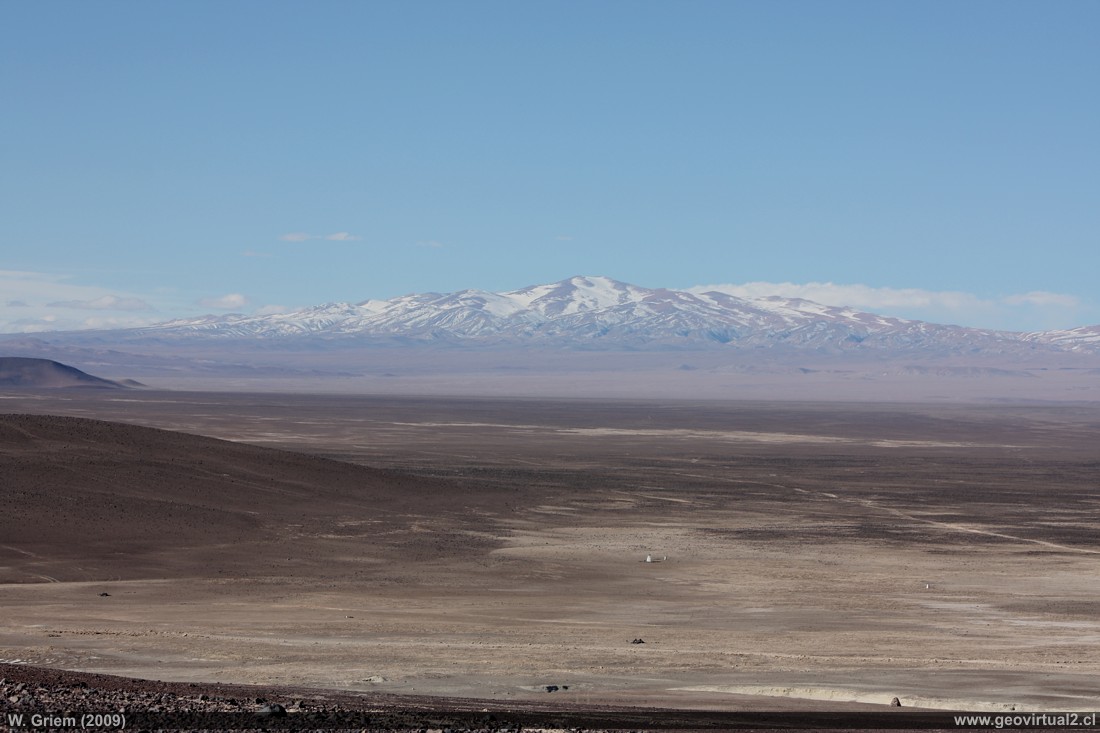 Im Nordosten erheben sich die Kordilleren Domeyko, welche hier eine Höhe