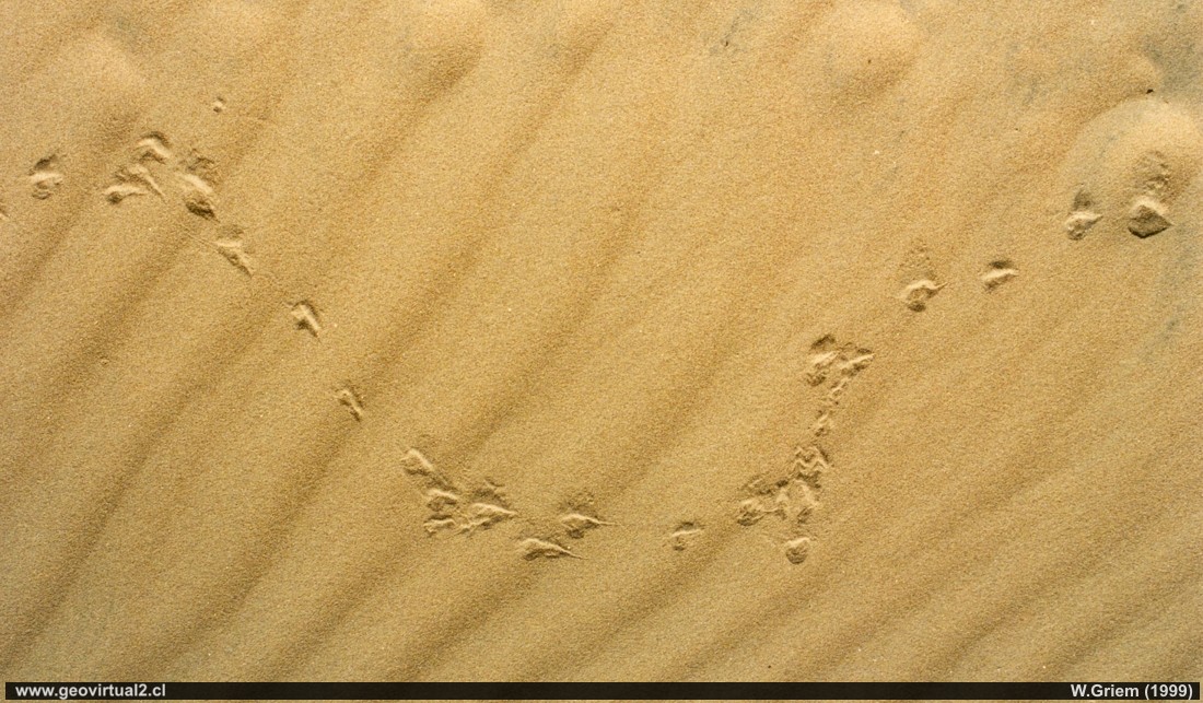 Las huellas de animales en la arena de una duna desaparece rápidamente,