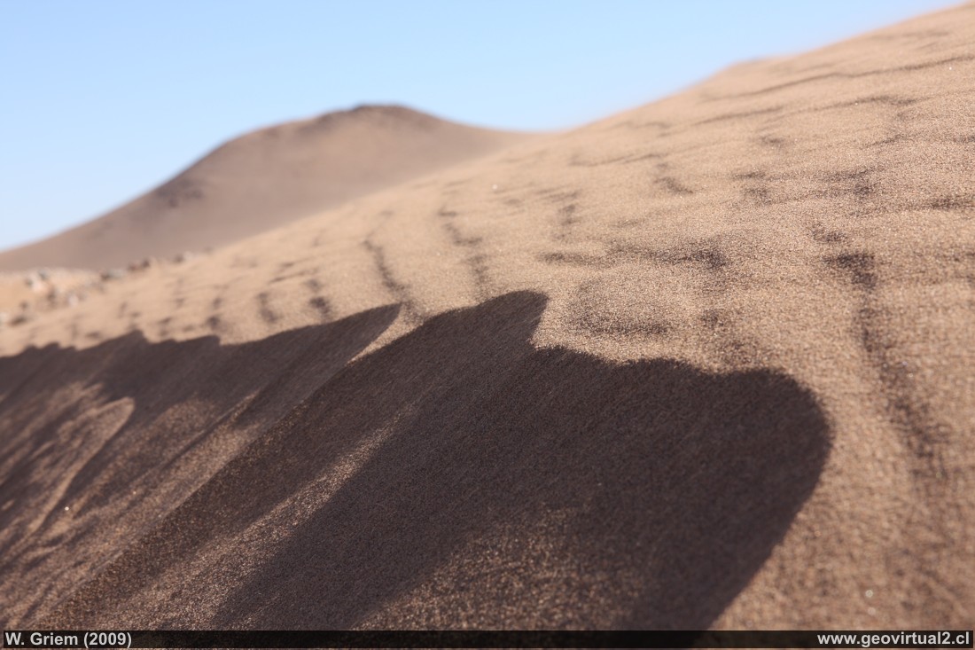 Transporte eólico: Barranco en una duna. (Región de Atacama) - Foto: W. Griem (2009, con Canon XSi) - en grande