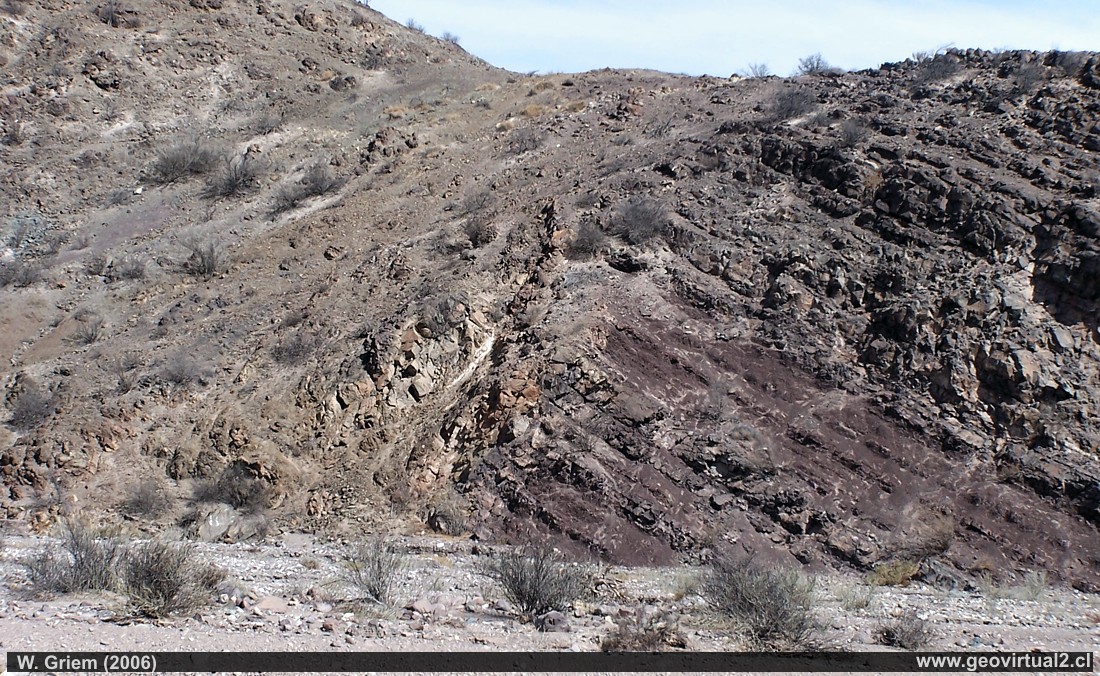 Sector de algunos 10 metros marca el contacto tectónico entre la unidad