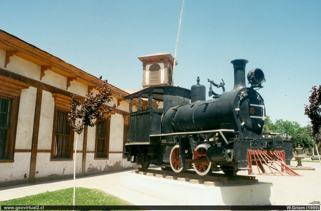 Foto: Locomotora de vapor en el frontis de la estación ferrocarril de Copiapó,