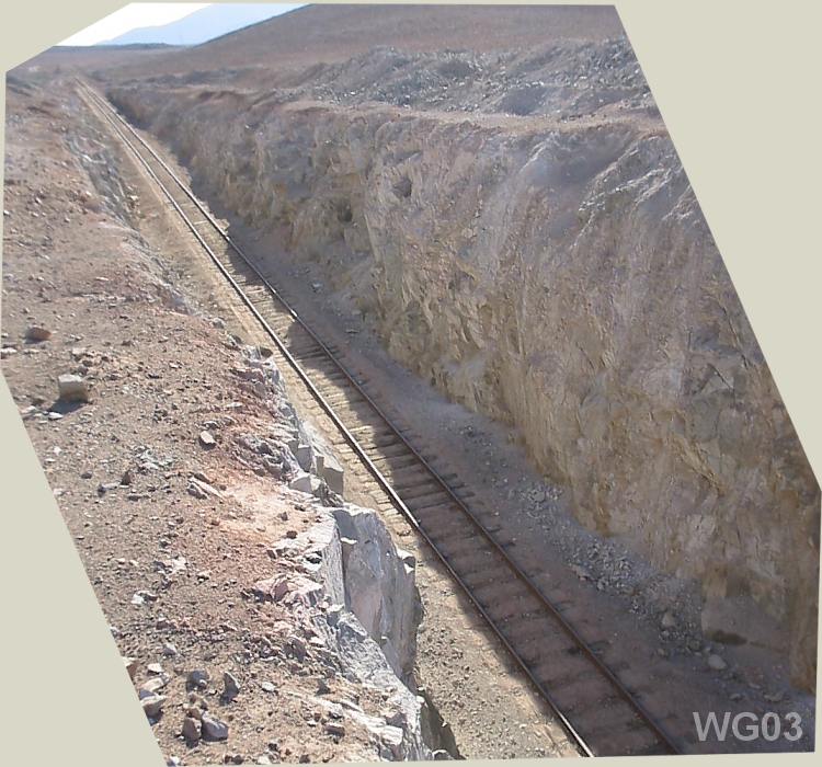 Foto: Corte del trayecto del FFCC entre Llampos y Carrera Pinto. (W. Griem, 2003; CaPS 1473) - foto grande