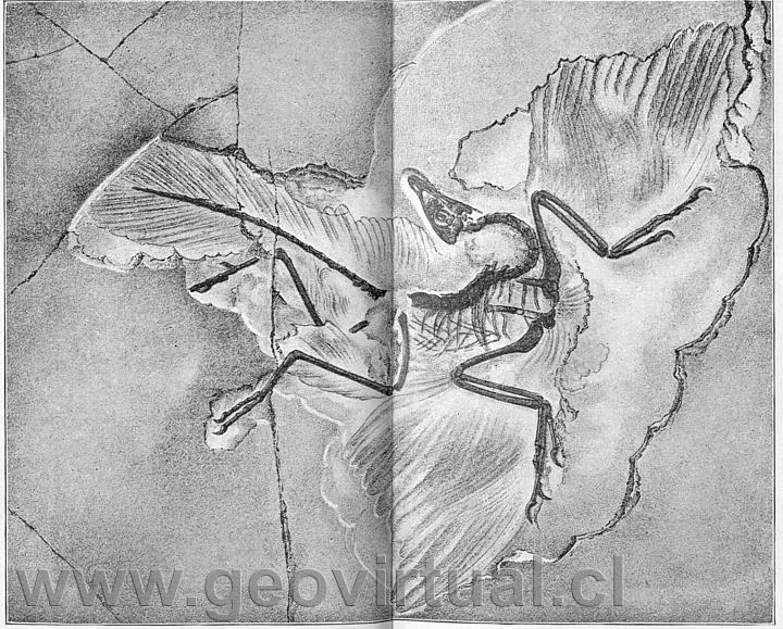Archaeopteryx Simensii Dames: Ilustración del original de Berlín.