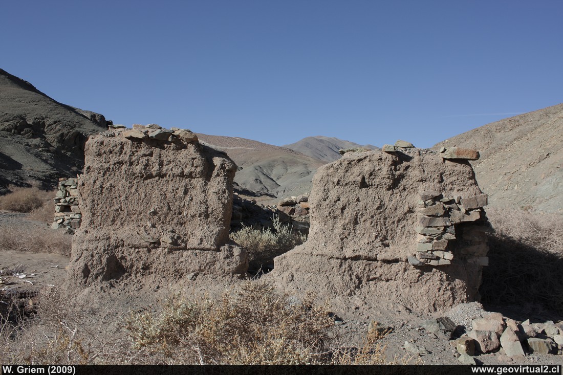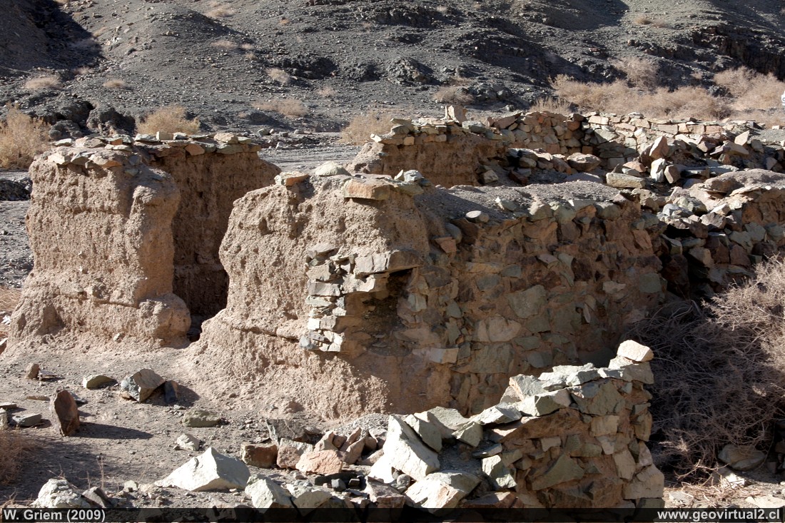 En la quebrada cerca de la estación ferrocarril Llampos se encuentran los restos de ex- pueblo Llampos, una estación muy importante para los viajeros al desierto de Atacama, especialmente para los mineros en camino a Tres Puntas.