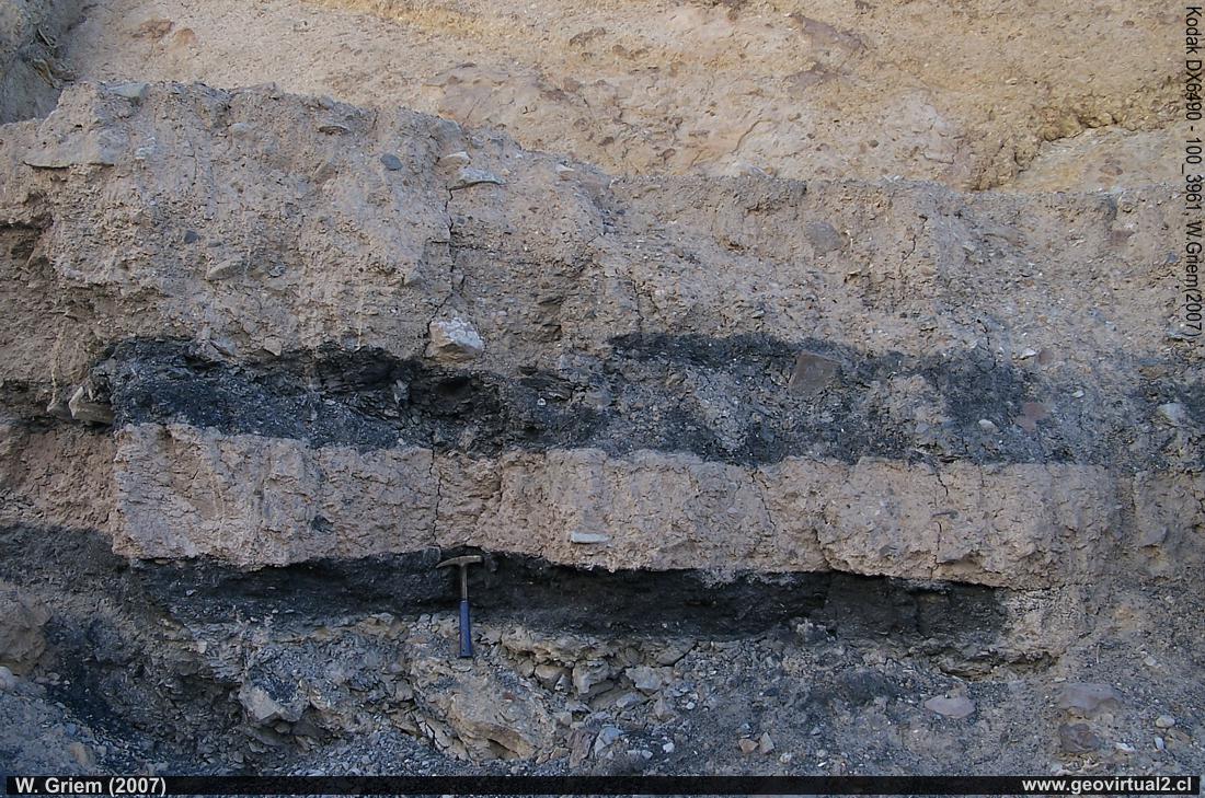 Foto: Estratos de carbón en el cuaternario de la Sierra La Ternera.